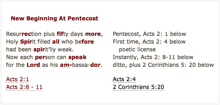 | The root meaning of Pentecost is fifty, the # in the Bible associated with a new beginning of new beginnings. The 3 Bible festivals bearing that # are the Feast of Weeks, Jubilee, and Pentecost. See all the links below | ||